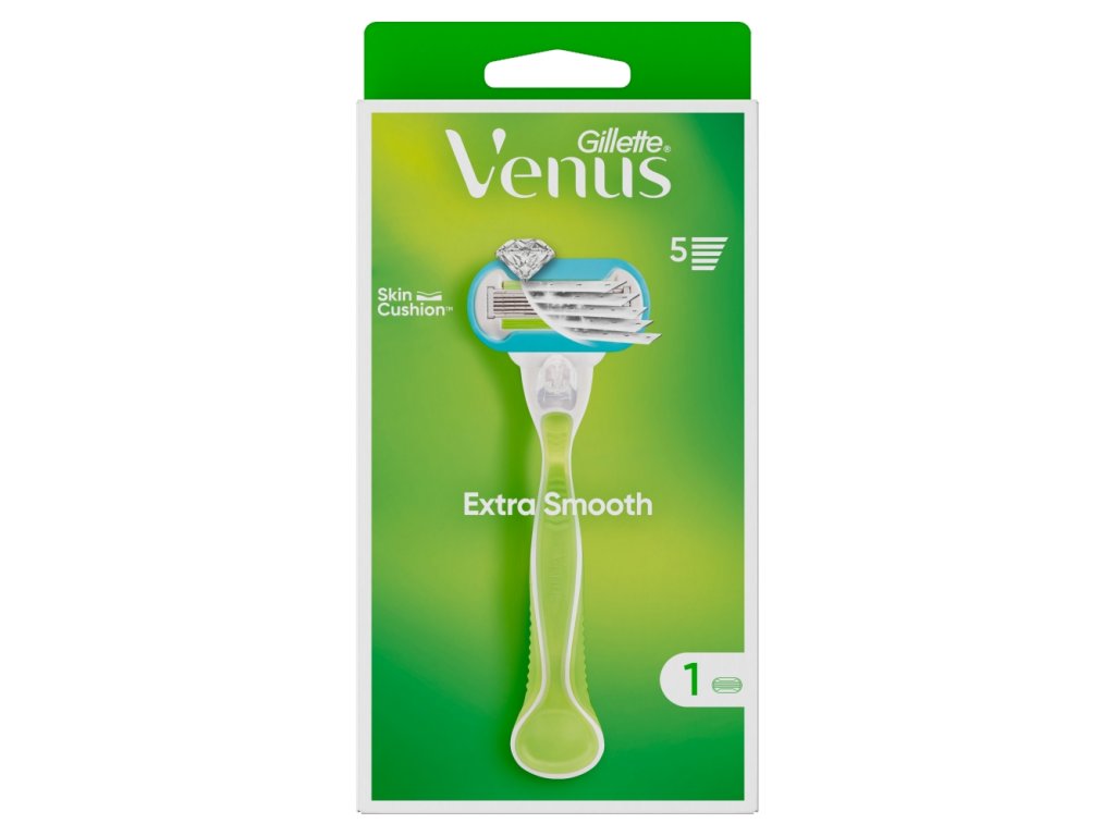 S dámským holicím strojkem Gillette Venus Extra Smooth zůstane hladké oholení pod kontrolou. Holicí hlavice mají 5 břitů, které zajišťují super hladké oholení.