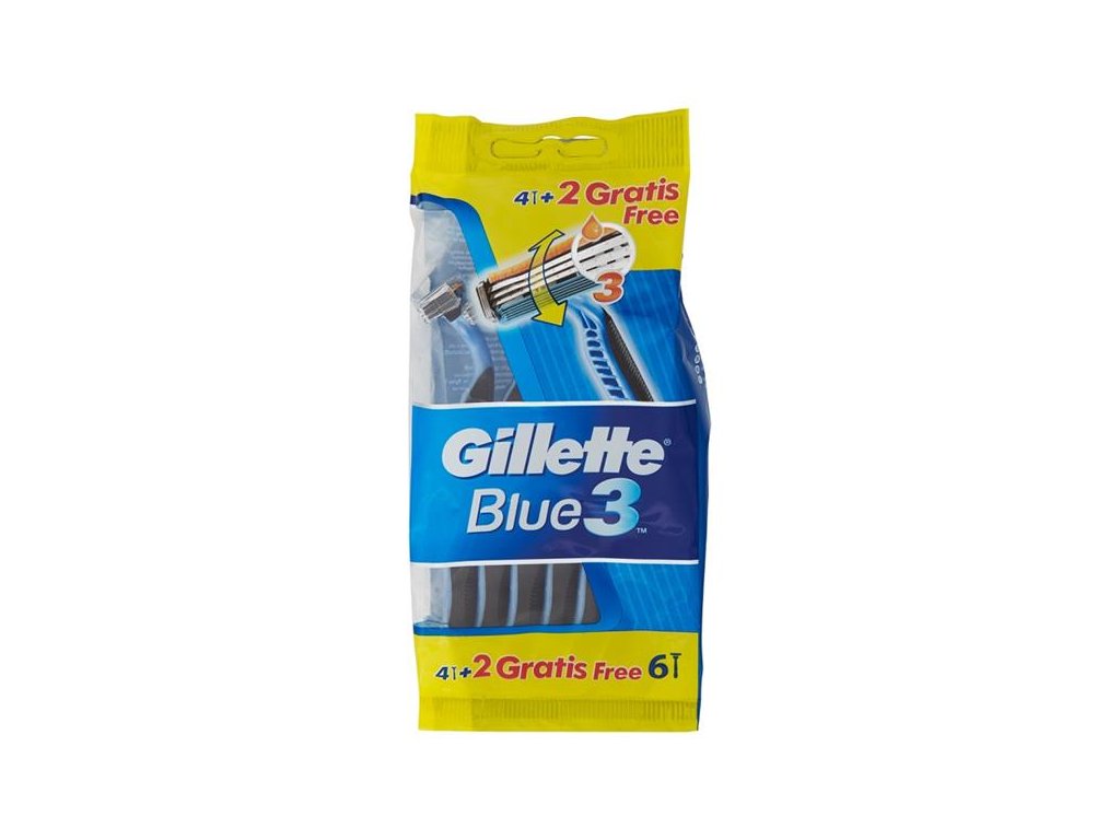 Gillette Jednorázový strojček Blue3 6 ks (sáč.) je pánský jednorázový holicí strojek navržený pro pohodlné a efektivní oholení. Každý strojek je vybaven třemi břity, které se automaticky přizpůsobují konturám obličeje, a zvlhčujícím páskem s vyšším obsahem hydratačních látek pro hladké klouzání.