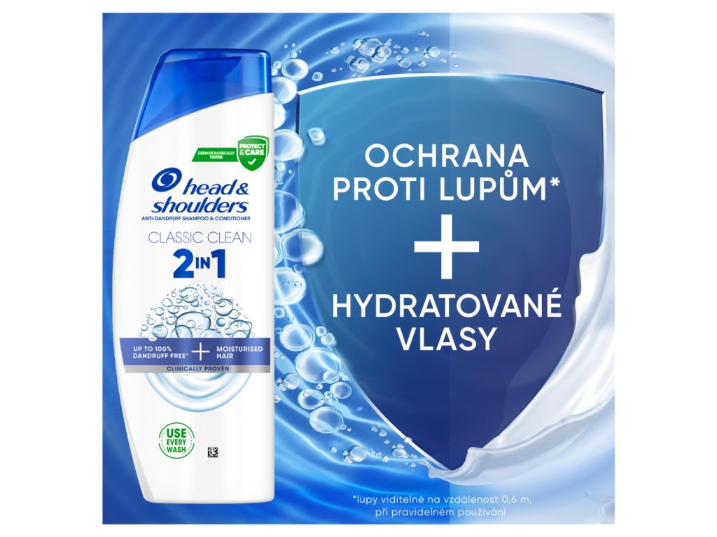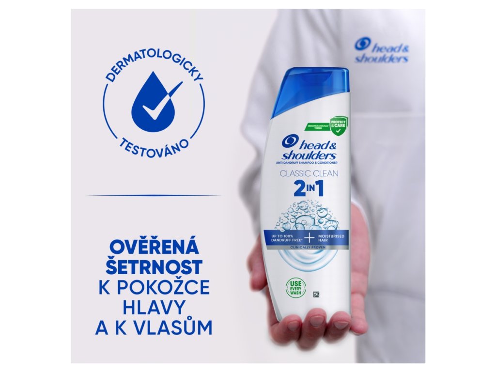 head&shoulders šampon na vlasy Classic Clean 2 v 1 obsahuje o 25 % více pečujících složek než běžný šampon head&shoulders a zanechává vlasy čisté a hebké. Pomáhá působit i proti odolným lupům. Šampon pro každodenní použití pro muže i ženy se složením Microbiome Balance, které se zaměřuje na hlavní příčinu lupů a udržuje vyvážený mikrobiom pokožky hlavy. Při pravidelném používání pomáhá bojovat proti viditelným i neviditelným lupům tím, že uvolňuje 2x více ochranných složek, které se dostávají do pórů a brání návratu odolných lupů. Má klinicky ověřené, dermatologicky testované složení s vyváženým pH, které zanechává pokožku hlavy a vlasy čisté a svěží. Každým umytím zlepšuje hydrataci pokožky hlavy a zároveň snižuje její problémy Dopřejte vašim vlasům péči od značky head&shoulders.