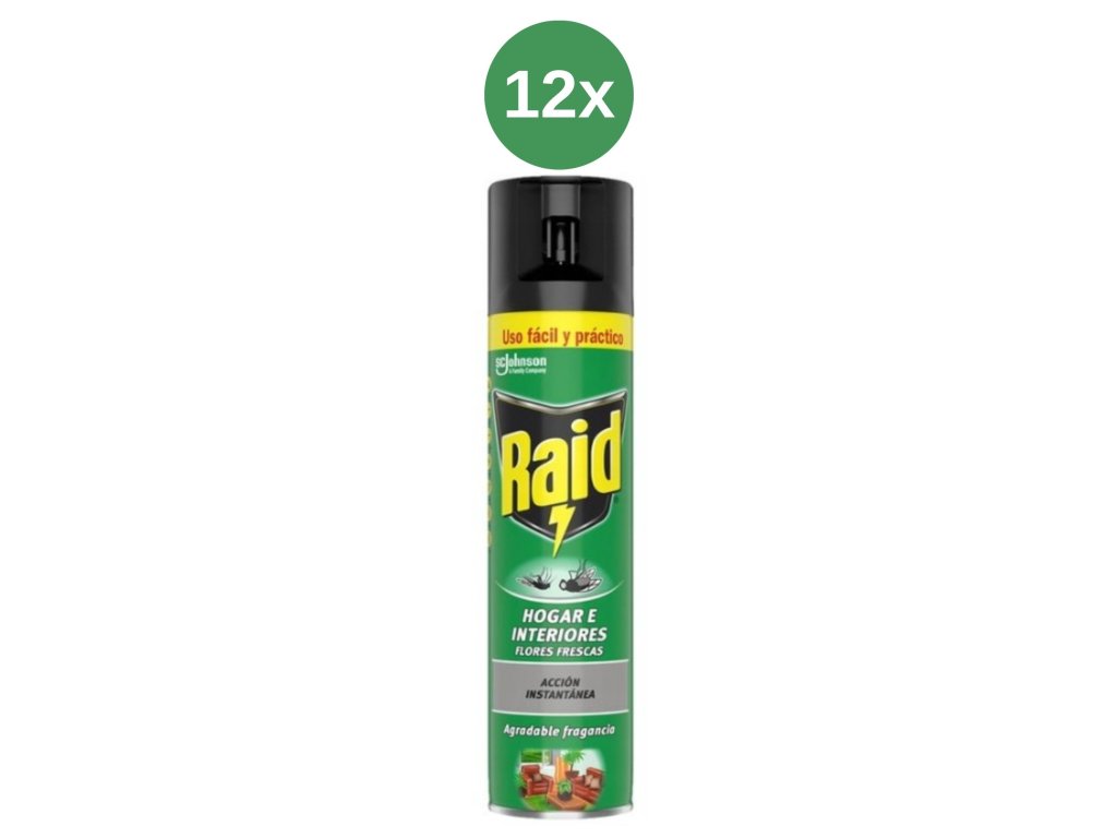 Инсектицидният аерозол Raid е предназначен за бързо елиминиране на летящи насекоми в и около дома. Ефективният състав действа незабавно и помага за защита от мухи, комари, оси, стършели и молци. Фината мъгла във въздуха може да убие насекоми без директен контакт и същевременно оставя свеж цветен аромат.