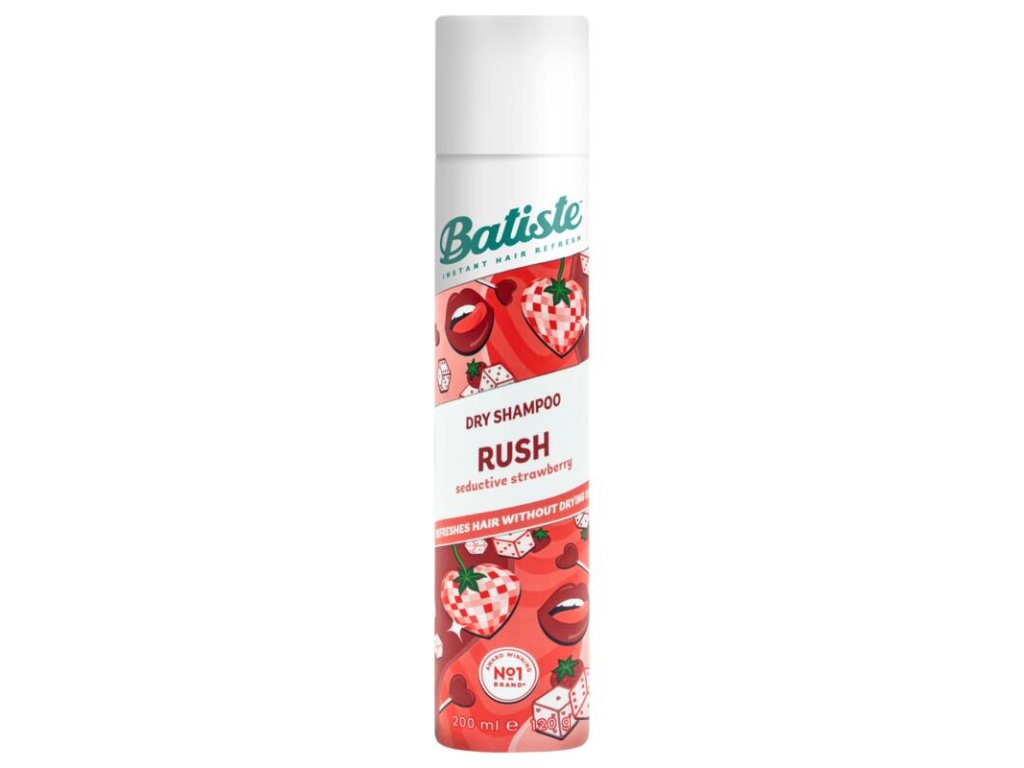 Suchý šampon s jahodově sladkou vůní Hledáte okamžitou dávku svěžesti a ženskosti? Batiste Rush Vás okouzlí sladkou vůní jahod s jemnými tóny růží, která povzbudí smysly a dodá Vašim vlasům energii kdykoli během dne. Buďte neodolatelná od rána až do noci! Suchý šampon Batiste je ideální pro použití mezi jednotlivými mytími. Účinně odstraňuje mastnotu a dodá na textuře na objemu. S Batiste získáte pocit čistých a svěžích vlasů, a to okamžitě bez použití vody! NÁVOD K POUŽITÍ: 4 KROKY pro krásné vlasy: Před použitím nádobku důkladně protřepejte. Nastříkejte na suché vlasy ke kořínkům ve vzdálenosti 30 cm. Důkladně vmasírujte konečky prstů tak, aby byly kořínky plně pokryty. Vlasy pročešte a upravte jako obvykle.Допълнителни параметри