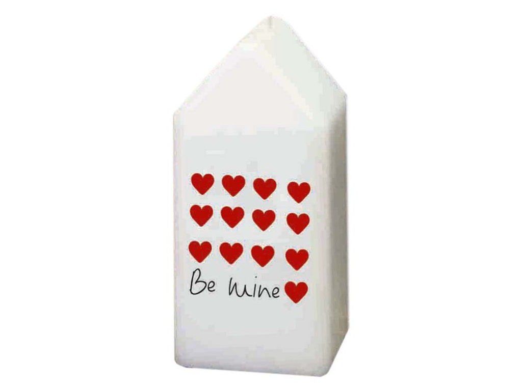 Свещ във формата на къщичка със сърца, идеална за романтични моменти. Размерите ѝ са 55 x 120 мм.Допълнителни параметри