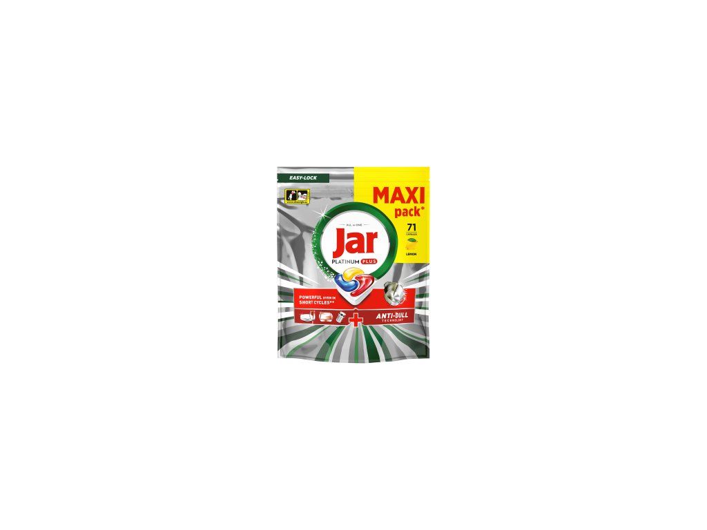 Jar Platinum Plus MAXI са високоефективни капсули за съдомиялна машина „всичко в едно“, които осигуряват перфектни резултати дори при силно замърсени съдове. Благодарение на комбинацията от гел и прахообразни съставки, те ефективно премахват мазнини, засъхнали остатъци от храна и други упорити замърсявания, без да е необходимо предварително измиване.