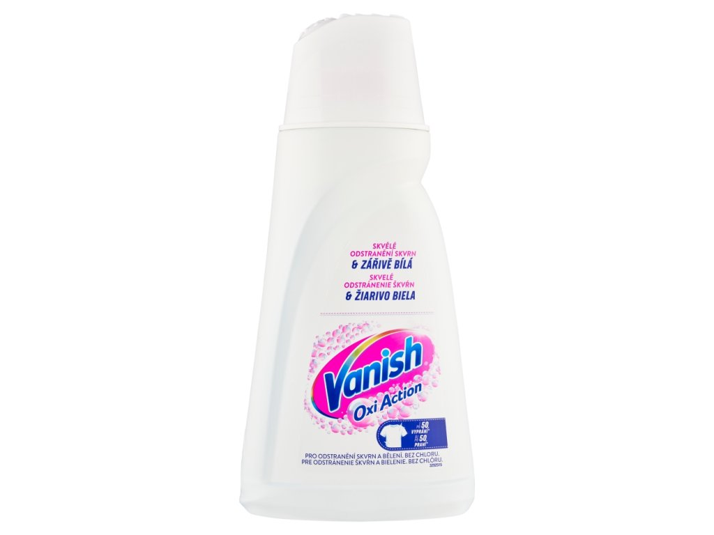 Течният препарат за премахване на петна Vanish Oxi Action за бели дрехи е ефективен начин да поддържате белите дрехи безупречно чисти и да премахвате петната още след първото пране.