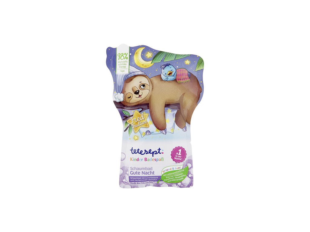 Ideální pro večerní zábavné koupání Zábava ke koupání pro děti - zdravá a barevná bublinková koupel tetesept Dobrou noc obsahuje extra jemné složení s aloe vera a esenciálním levandulovým olejem, které je přizpůsobeno citlivé dětské pokožce. Neškodné potravinářské barvivo mění barvu vody na purpurovou a jemná vůně levandule dítě před spánkem příjemně zklidní.Допълнителни параметри