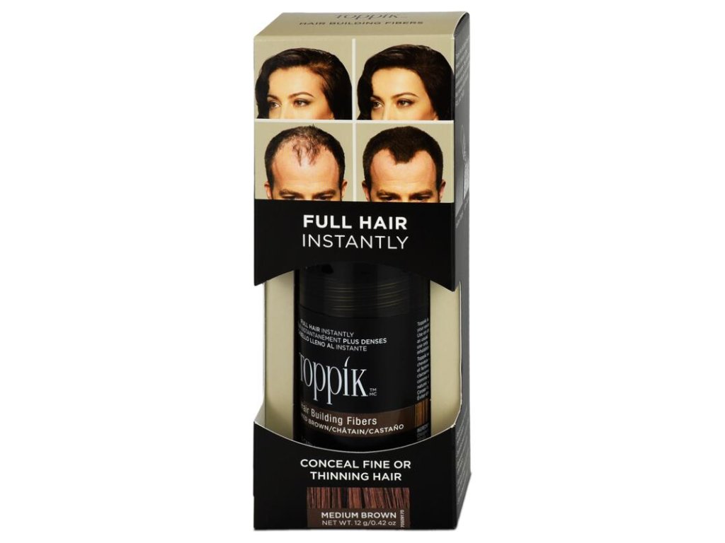 Husté vlasy během chvilky Toppik vlasová vlákna jsou určena pro lidi s jemnými, slabými, řidšími vlasy či těmi, kteří trpí alopecií. Okamžitě dodá hustotu a plnost vlasů, překryje prosvítající pokožku. Toppik je odolný vůči potu, dešti i větru. Je smývatelný šamponem. Najděte si svůj odstín. Toppik vlasová vlákna fungují díky přírodní magnetické přitažlivosti. Jsou vyrobena z přírodního keratinu, stejného, jaký se vyskytuje v lidských vlasech. Mají přírodní statický náboj, který vytváří magnetický efekt, a tudíž se váže i na ty nejjemnější prameny lidských vlasů. Odstín: středně hnědá Návod k použití: Vysušte a upravte vlasy tak, jak jste zvyklí Aplikujte Toppik vlasová vlákna na potřebná místa Jemně vlasy pročešte, aby se vlasová vlákna co nejlépe rozprostřela Vhodné pro muže i ženy. Lze kombinovat více odstínů vlasových vláken dohromady. Více na www.toppik.cz.Допълнителни параметри