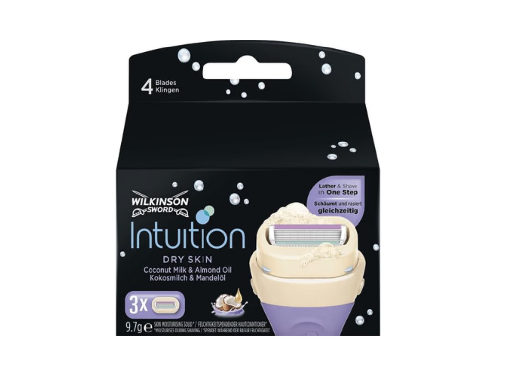 Jednoduché a pohodlné žiletky Wilkinson Intuition Dry Skin jsou ideální pro aktivní ženy. Čtyři břity jsou obklopeny kondicionérem, který pění, holí a zvlhčuje pokožku v jednom kroku bez použití gelu na holení. Výsuvná hlava břitů se přizpůsobí konturám těla pro důkladné oholení.